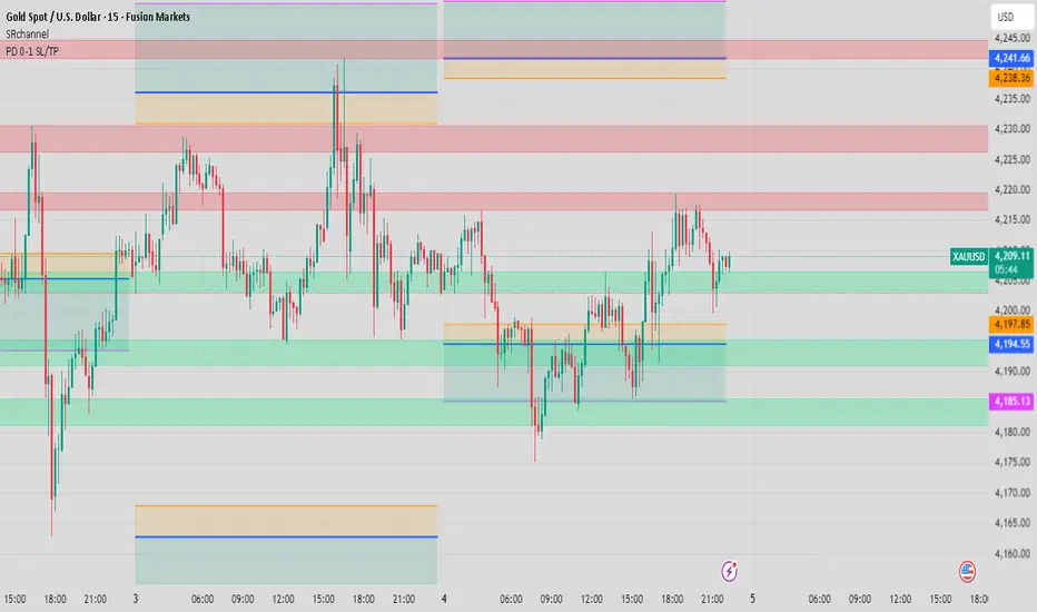 Inner Zone (Orange): Calculated inside the range. Acts as a buffer for Stop Loss placement or entry zones for mean reversion.