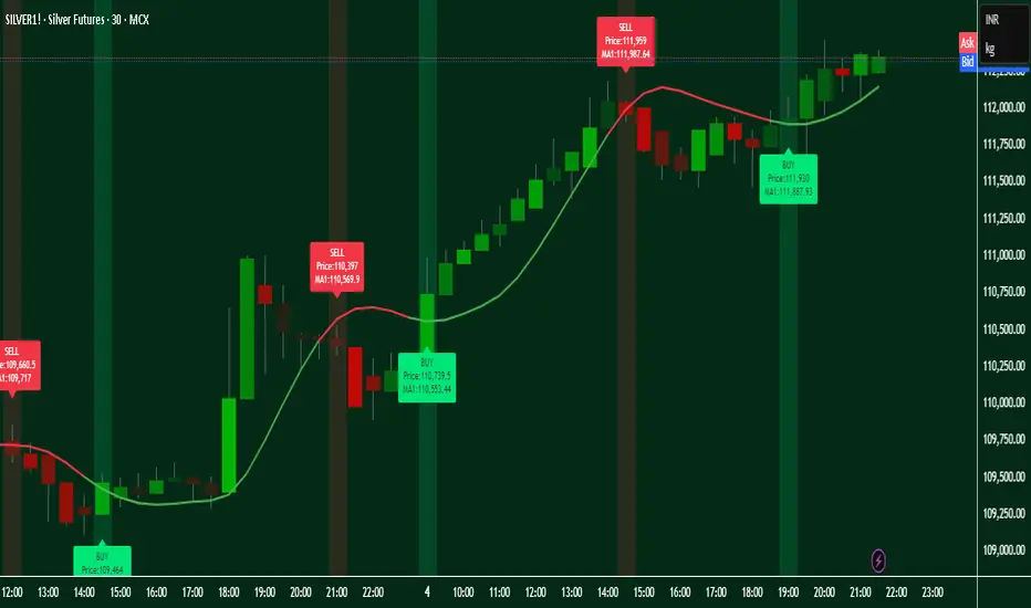 Sell Signal: Triggered when the Heikin-Ashi close falls below the MA1 after a buy signal has already been issued.