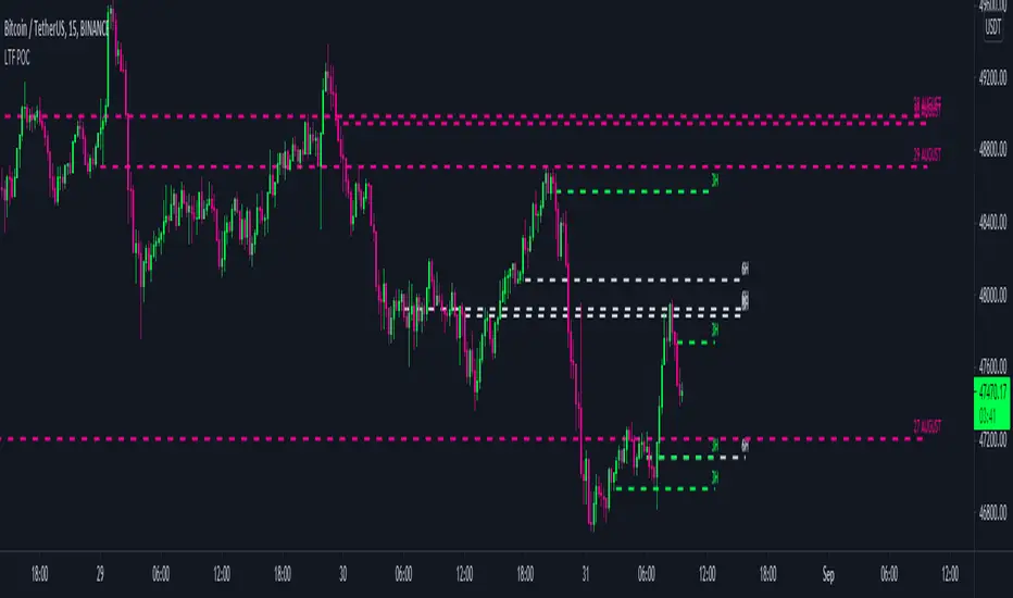 There are many requests to include lower timeframes in this script, that is why I created this script. I could have incorporated all the timeframe POC's into one indicator but I went this route to keep things more organized between all the different timeframes.