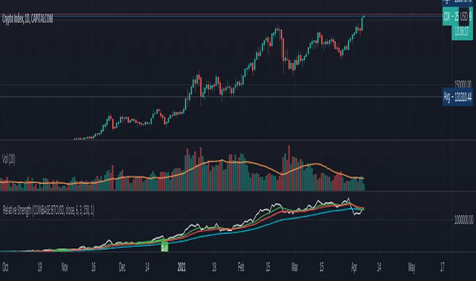 The following indicator uses relative comparison of two assets by the formula n/s3, where n is the t asset on the screen while s3 the underlying assets it is being compared to. The usefulness of the indicator is to primarily compare the assets being traded like BTC (most prominent crypto with largest market cap), with some other crypto like TRX(this has a relatively smaller market cap). Since we get a broader market view through relative comparison of the two assets, the most important function is to find the edge through divergences. Just like RSI the divergences rules would be the same and most important trades would be trades in the direction of the trend along accompanies by divergences that are in line with the trend. Simple divergences work for the best trades with default settings. Although BTCUSD is the default asset to compare with it can be switched with any other asset as well, but it is very much preferred that one uses some type of index as the base asset for comparison. Other than that for simple trading the trend MA crossover can also be used as a signal for simple trend following.