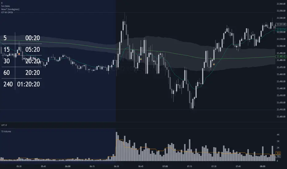 - SMA Length: Number of "volume averages" to look at. Keep this at 1 if you want the average volume at the exact moment in the day. If you increase it, will also average in the past few [SMA Length] candles of "volume averages".