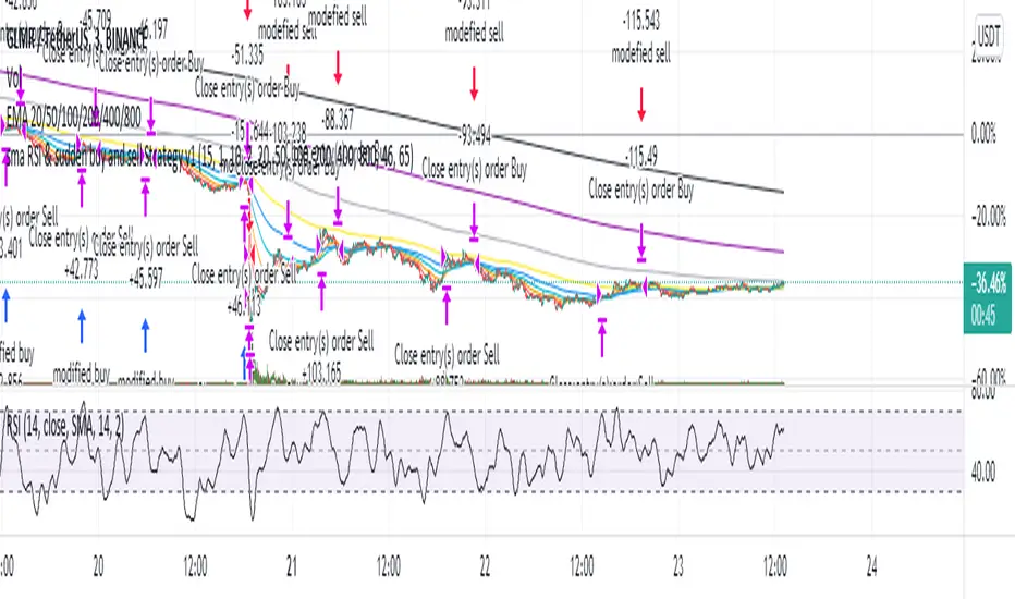 Settings - Length -RSI length (hardly needed to be changed but sometimes it doubles the net profit)(+/-2)