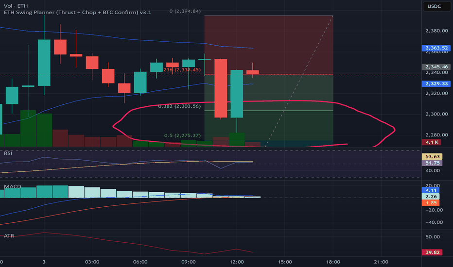ETH Swing Planner (Thrust + Chop + BTC Confirm) v3.1 by Sam KimThis is a swing-trading framework designed to keep you out of bad trades, not push you into more of them.