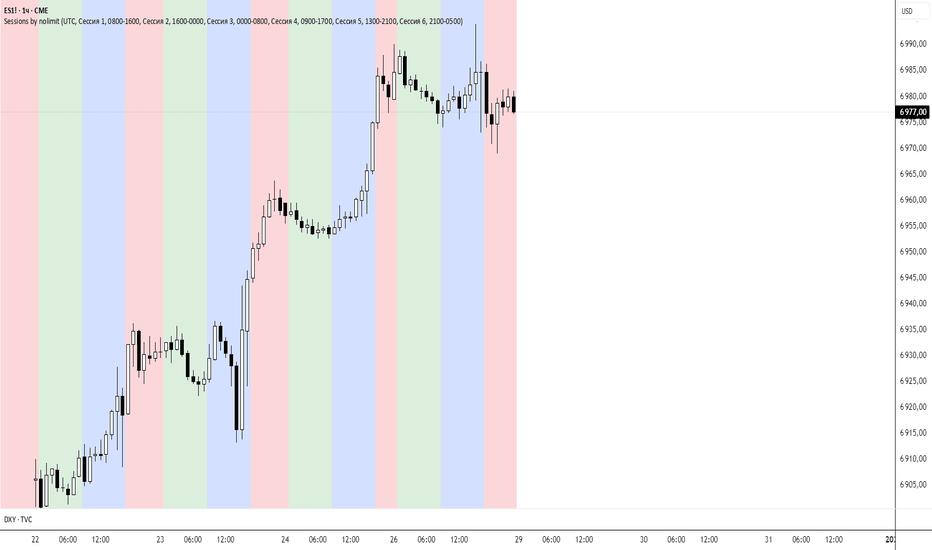 Session presets (NYSE/CME RTH/FX NY/Custom) with timezone handling.