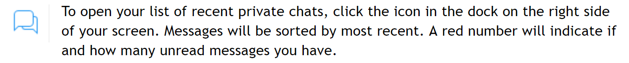 관리자의 모든 직접 메시지(경고 또는 차단 메시지 포함)는 비공개 채팅으로 전송됩니다. 수신 여부를 정기적으로 확인하는 것이 중요합니다.