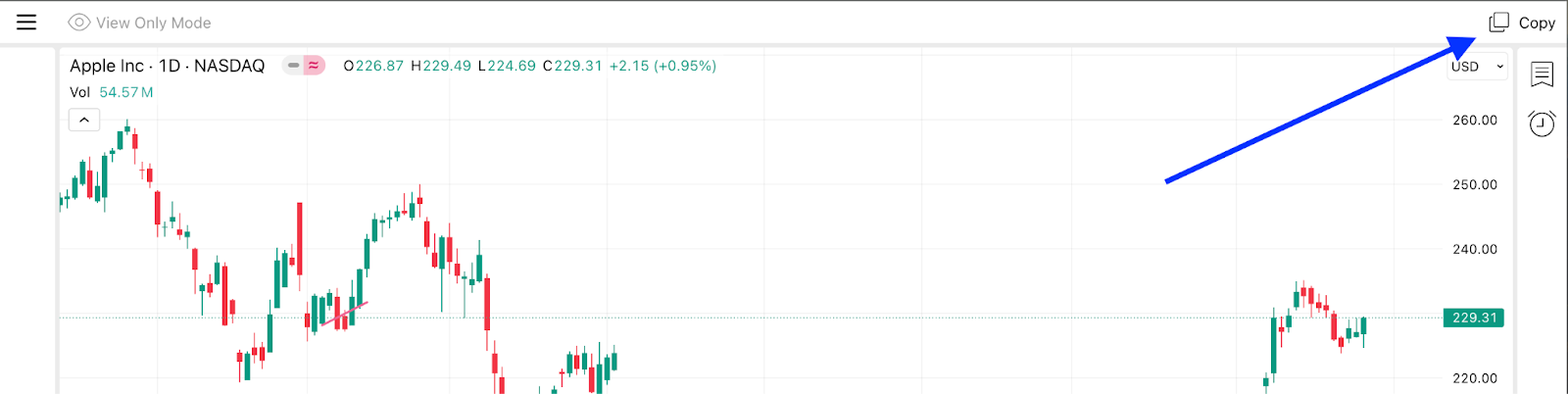 차트를 공유받은 사람은 보기 전용 모드로 차트를 볼 수 있습니다. 링크를 가진 사람은 복사를 선택하여 레이아웃을 자신의 것으로 저장할 수 있다는 점을 참고하세요.
