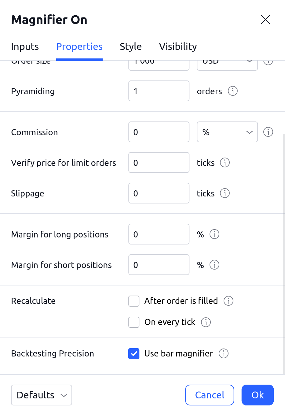 To switch the Bar magnifier option, toggle the corresponding input in strategy's "Settings/Properties" window.