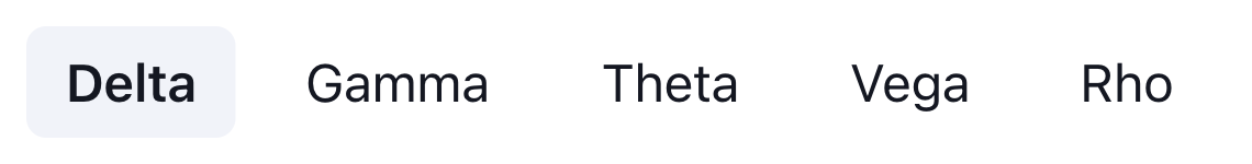 차트는 TradingView 옵션의 핵심입니다. 주요 목적은 전략 매개변수(P&L 및 그릭스)가 기초자산 가격에 어떻게 의존하는지 시각화하는 것입니다. X축은 기초자산 가격을 표시합니다.