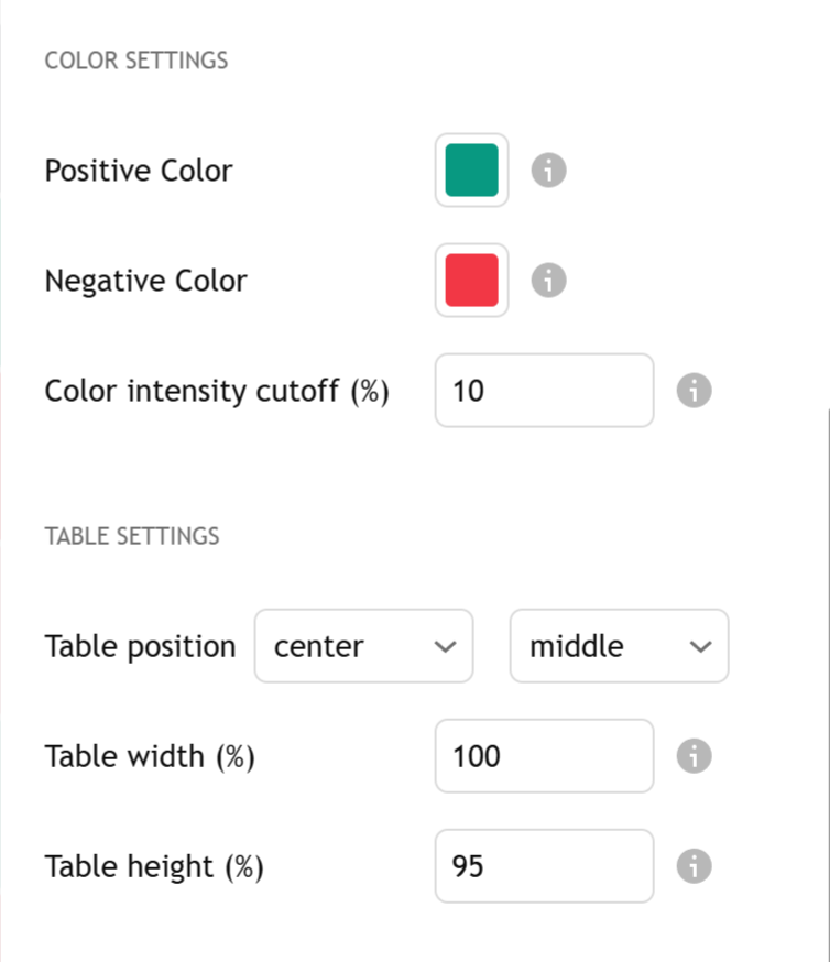 이 설정은 히트맵 테이블이 해당 페인에 대해 가지는 수평 및 수직 위치를 지정합니다. 기본값은 “center”와 “middle”로, 테이블을 페인 중앙에 위치시킵니다. 첫 번째 입력값으로 테이블을 좌우로 이동하고, 두 번째 입력값으로 상하로 이동합니다.