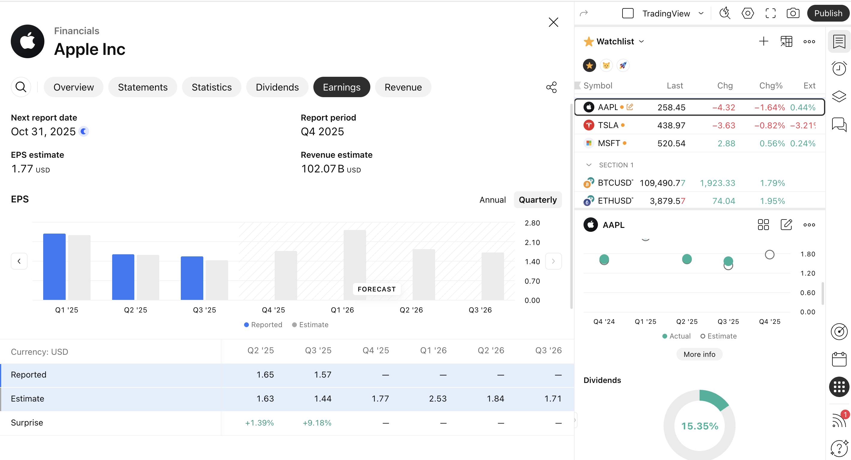 - 배당 및 수익 캘린더: 예정된 보고서를 추적하고 그에 따라 전략을 조정할 수 있습니다.