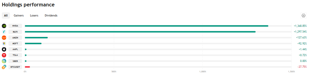 - 상승 자산 – 포트폴리오의 전체 기간 동안 긍정적 수익을 기록한 자산만 표시됩니다.