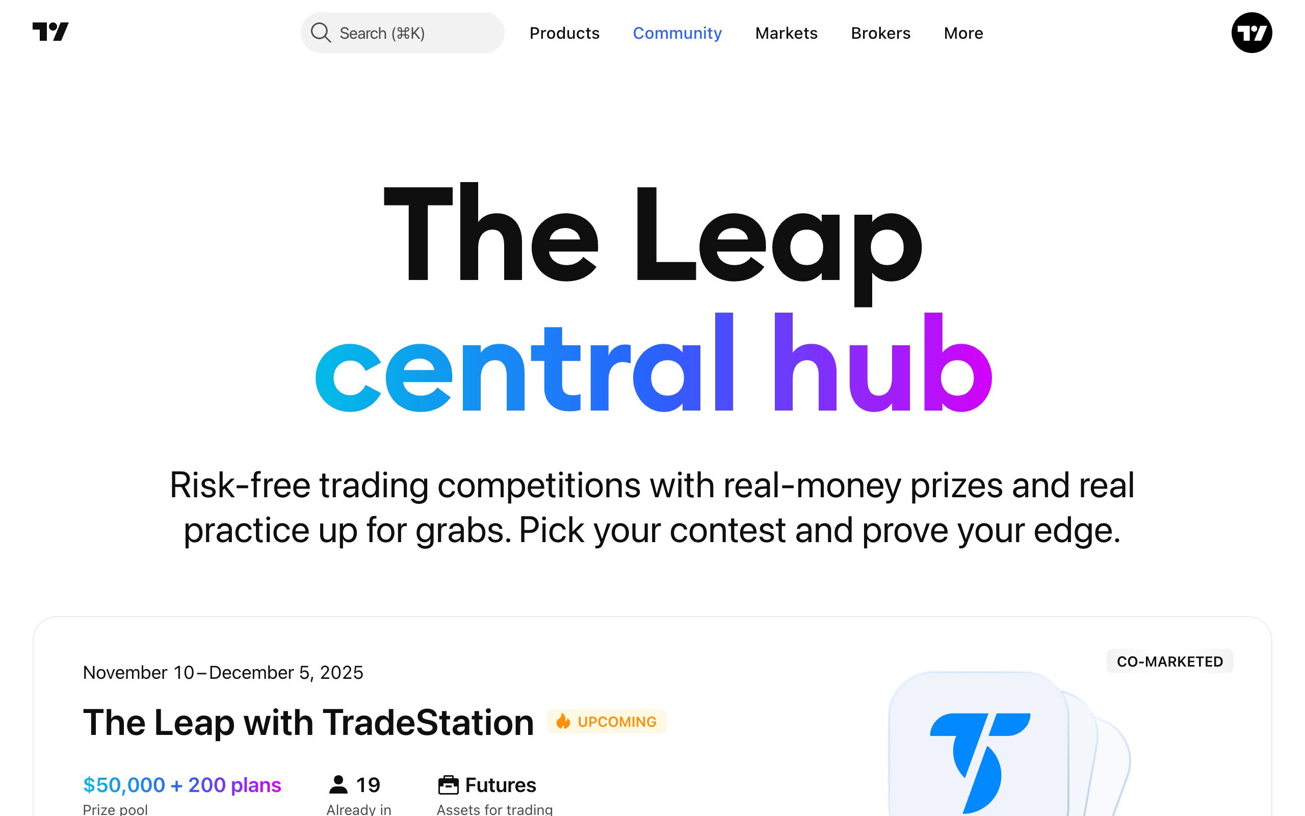 The Leap의 각 에디션에는 상위 성적을 거둔 트레이더를 위한 상금과 함께 주목할 만한 성과를 위한 추가 상이 포함됩니다. 상금에는 현금 보상, TradingView 플랜 또는 플랜 연장 등이 포함될 수 있습니다.